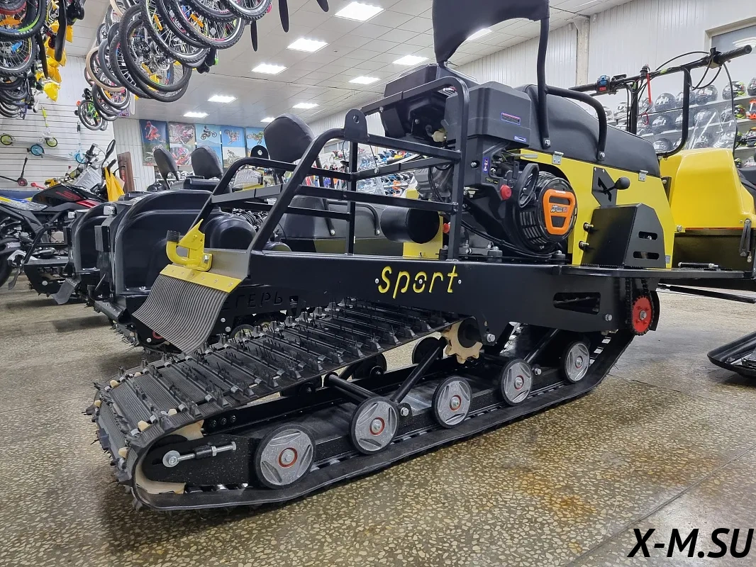 На новом Бурлак Егерь Спорт установлена склизовая подвеска, которая в сочетании с мощным двигателем 20 л.с. с центральным расположением и гусеницей 500 мм обеспечивает отличную проходимость по снежному покрову и дарит эмоции от уверенной эксплуатации техники