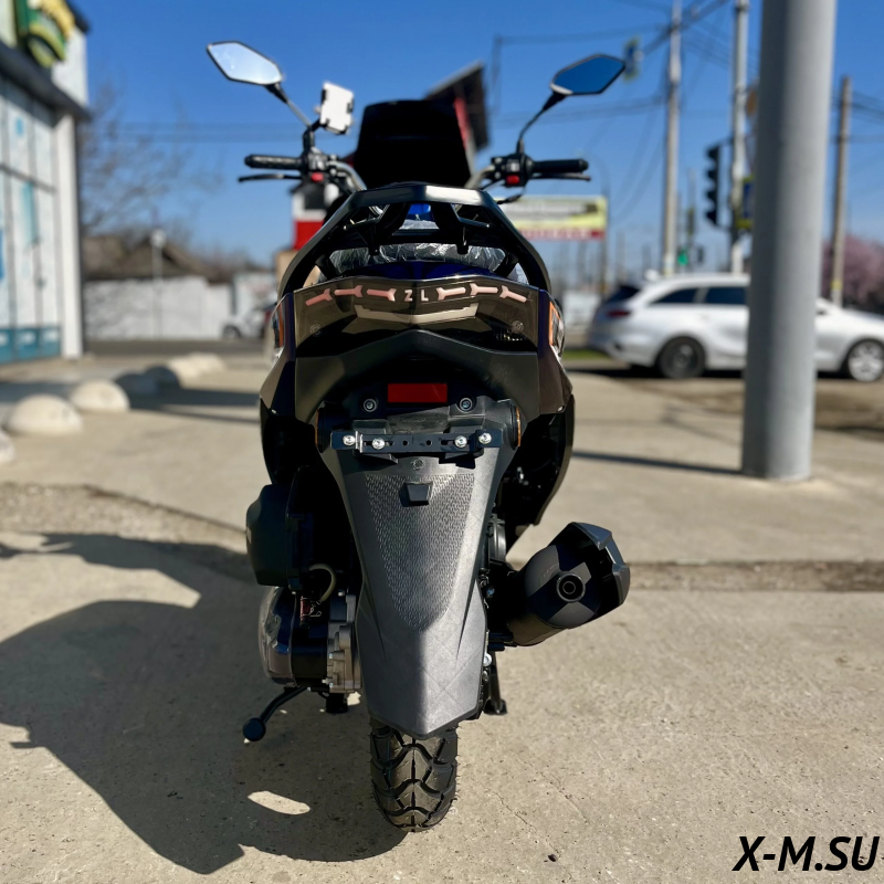 Комплектация -ЛЭД оптика - Кофр - Электронная панель приборов - Держатель для телефона - Набор ключей - Сигнализация с автозапуском -Дисковые тормоза (перед/зад) -Шлем в подарок |